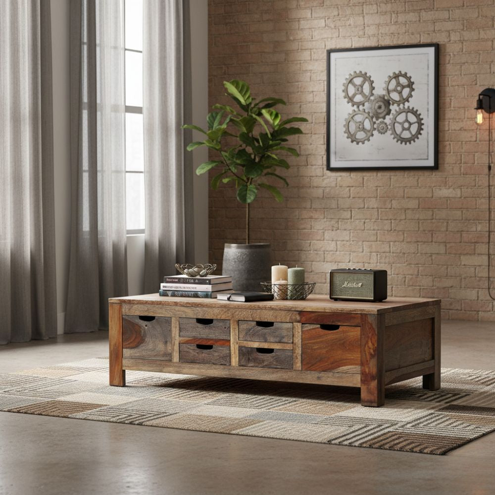 La table basse industrielle n’est pas seulement un meuble : c’est une pièce de vie.