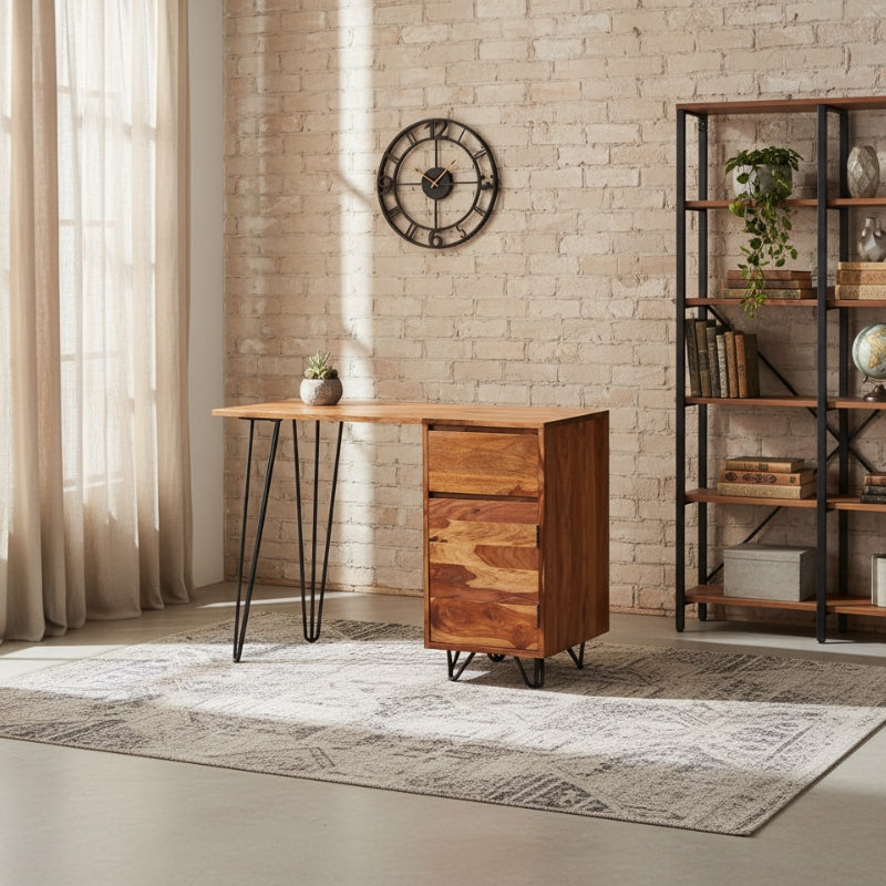 Le bureau industriel en bois et métal est un choix sûr pour créer une atmosphère authentique, fonctionnelle et durable. Entre lignes épurées, plateau massif et structure métallique robuste, il devient rapidement la pièce maîtresse de votre bureau ou de votre coin télétravail.