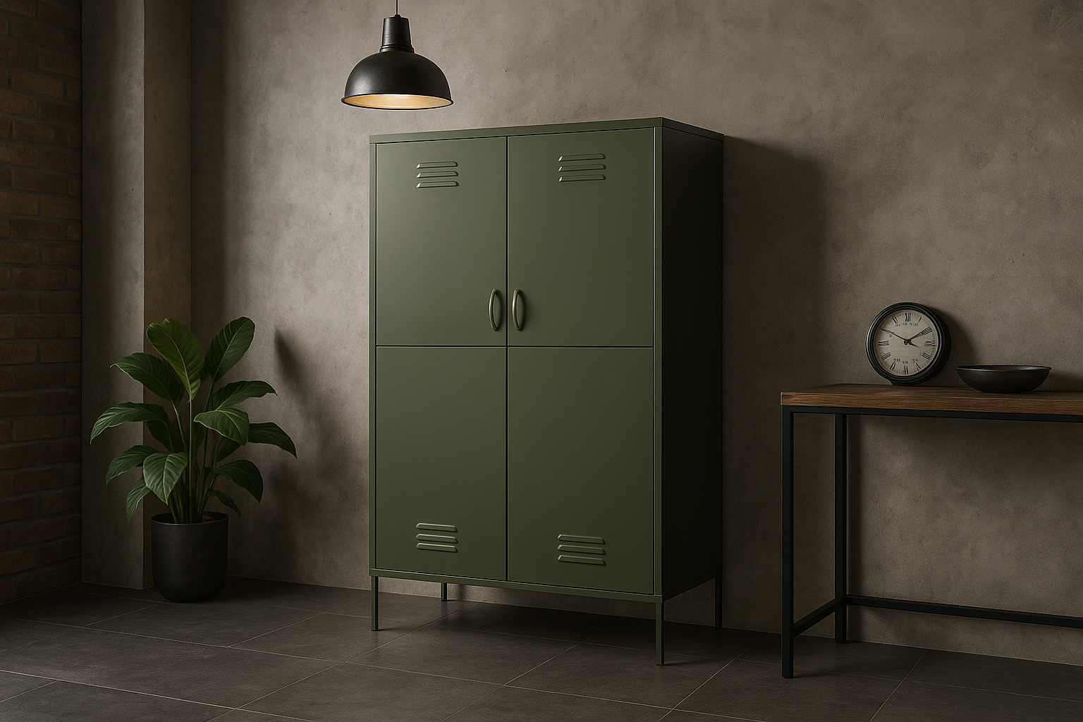 Avec sa structure en métal noir, ses portes pleines ou ajourées, ses poignées apparentes et parfois ses roulettes vintage, l’armoire industrielle attire le regard dès l’entrée dans la pièce. Elle devient un élément central de votre aménagement, capable de sublimer un mur vide ou d’asseoir visuellement l’esprit “atelier”.