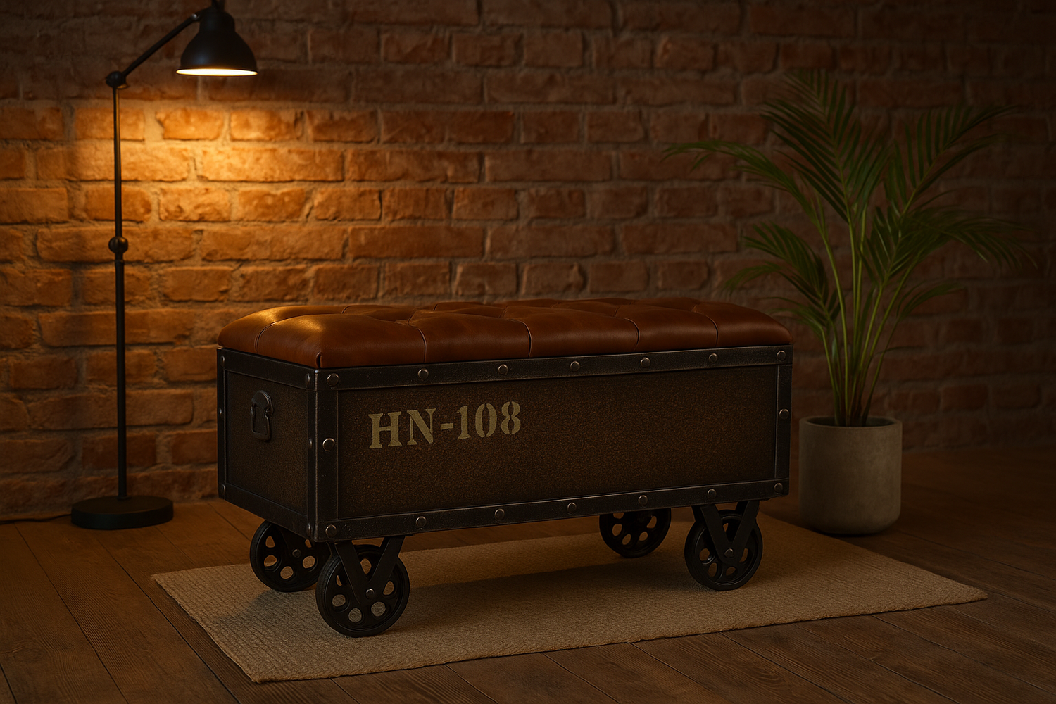 Si le coffre industriel se distingue autant, c’est parce qu’il mêle à la fois authenticité des matières et esthétique vintage. Chaque détail participe à créer une ambiance brute, assumée, et pleine de caractère.