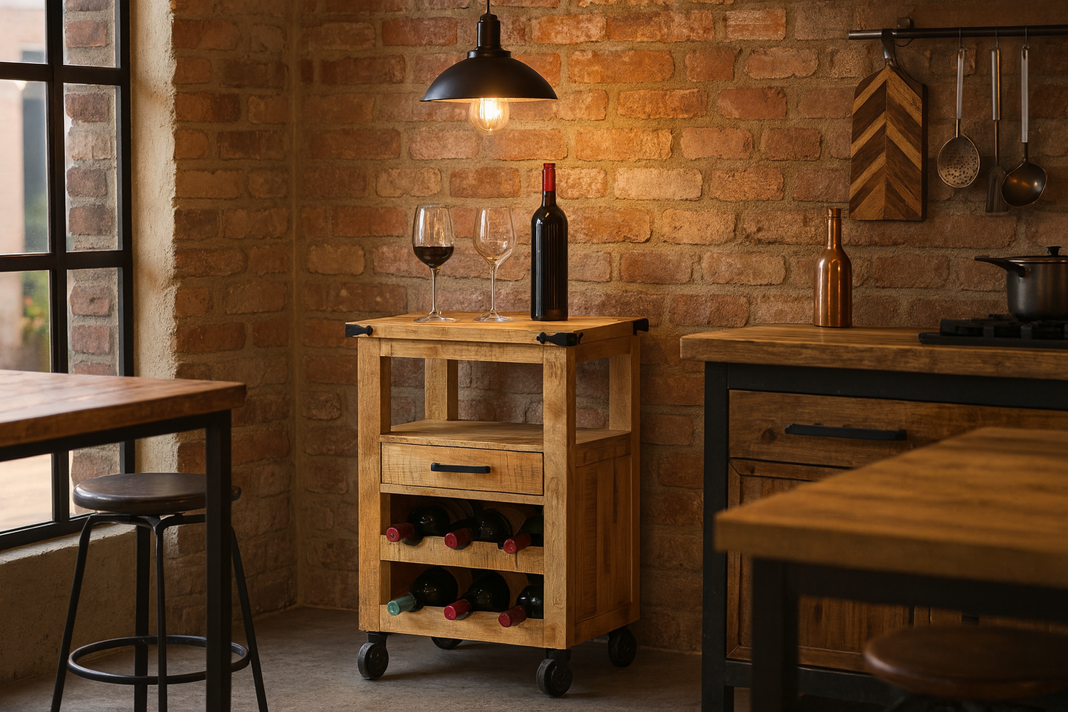 À mi-chemin entre le meuble de rangement et l’élément déco, la desserte industrielle se démarque par sa polyvalence et son style affirmé. Elle trouve facilement sa place dans une cuisine, une salle à manger ou un salon, tout en apportant une touche brute inspirée des anciens ateliers.