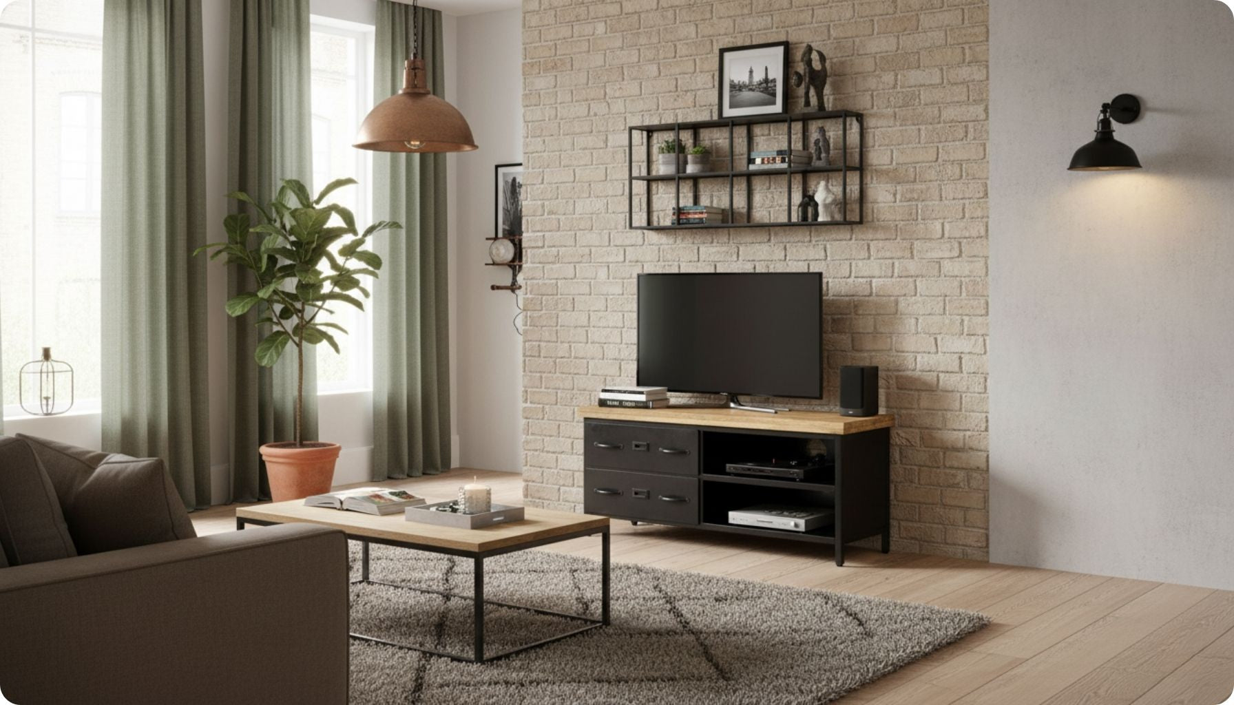 Un bon meuble TV industriel allie esthétique, praticité et durabilité. Bien choisi, il vous accompagnera pendant de longues années, tout en renforçant l’âme de votre pièce à vivre.