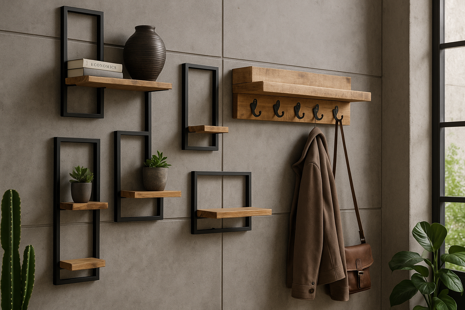 Ce qui est passionnant avec les objets muraux industriels, c’est qu’ils peuvent être utiles autant que décoratifs. Vous pouvez opter pour une structure métallique pour suspendre des plantes, un rangement mural pour la cuisine ou encore des crochets stylisés pour l’entrée. Ou bien vous laisser séduire par des pièces purement visuelles, qui donnent simplement le ton sans chercher la fonctionnalité.