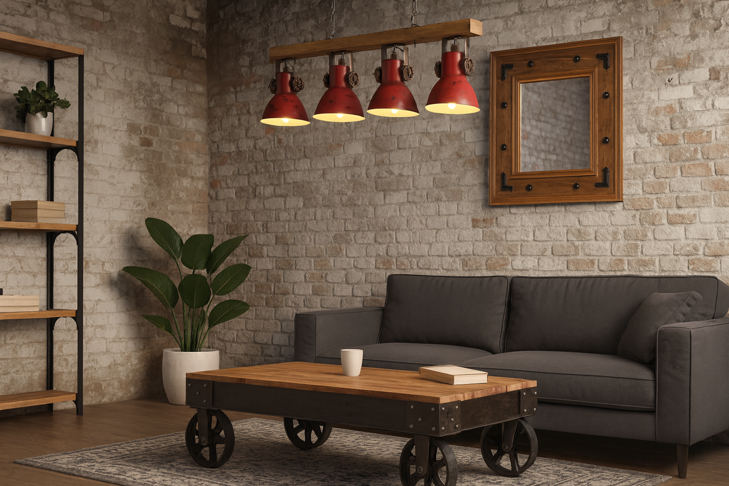 Inspirée des anciennes usines et ateliers, la suspension industrielle ne cherche pas à être “lisse” ou minimaliste. Elle s’assume : métal brut, ampoules apparentes, câbles visibles… tout est pensé pour raconter une histoire.