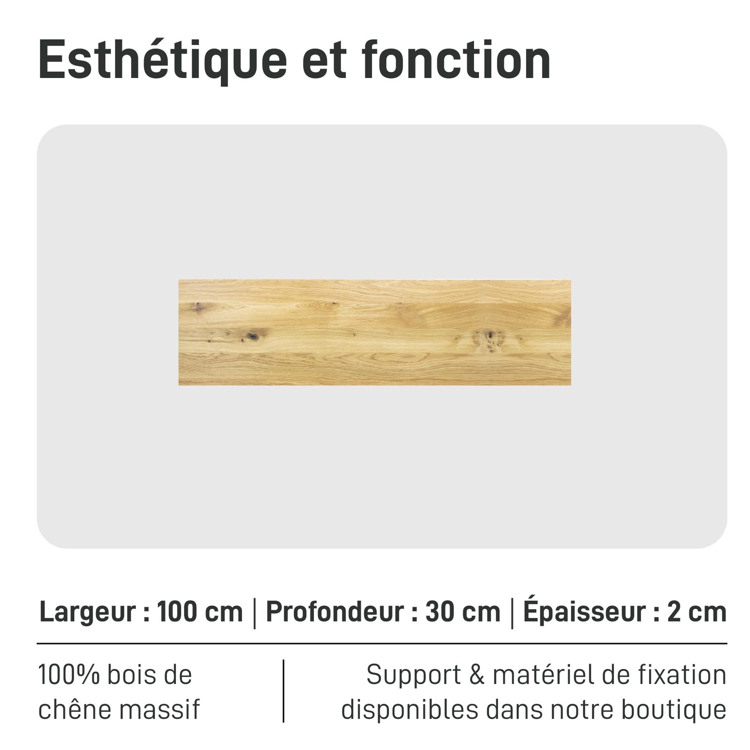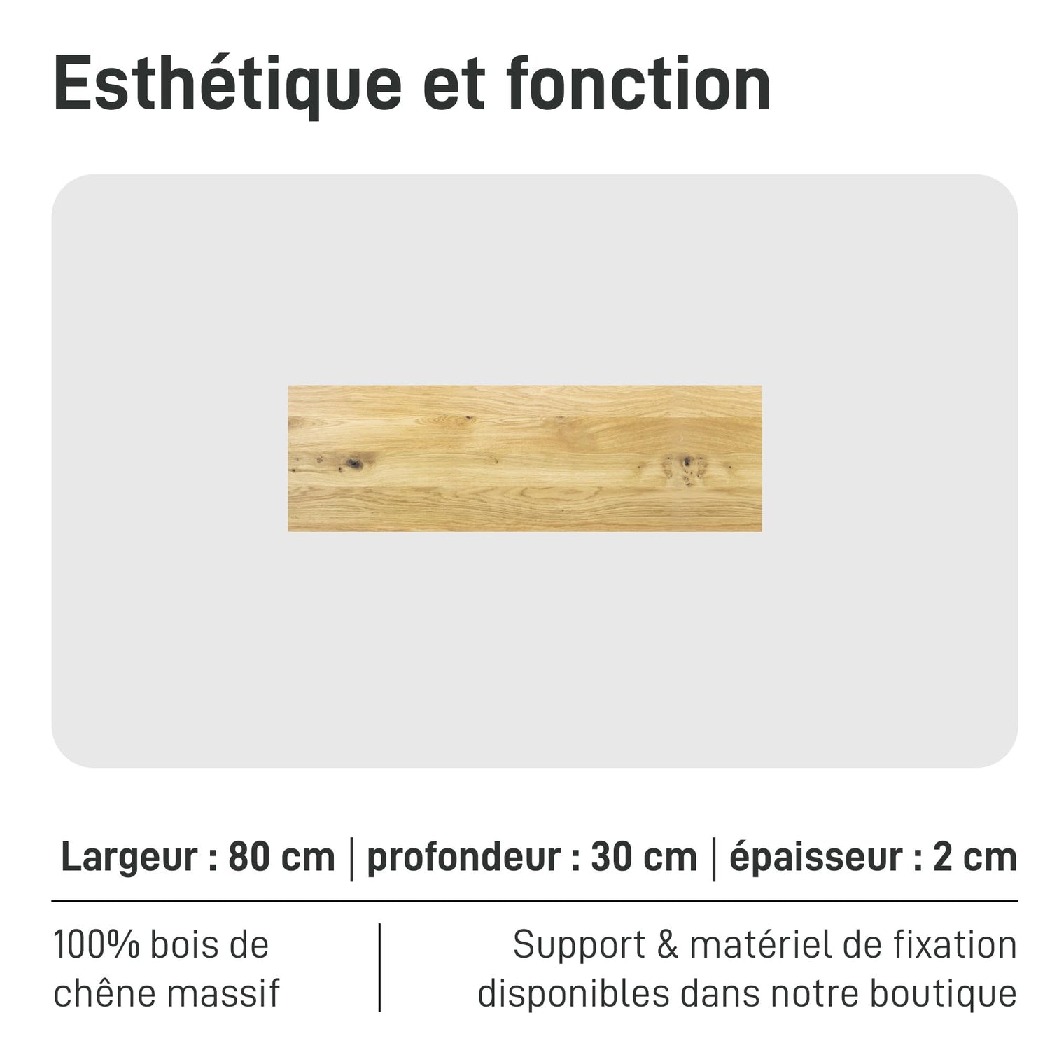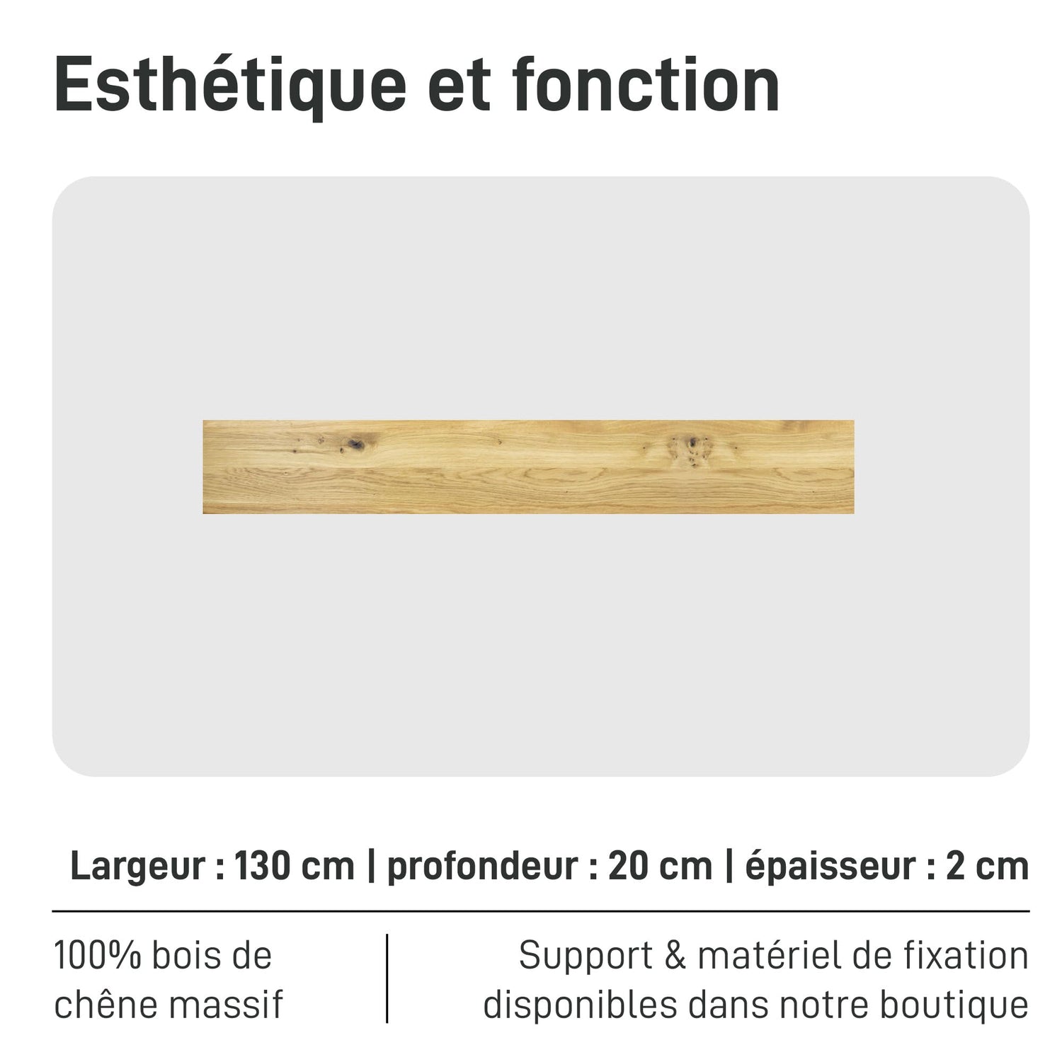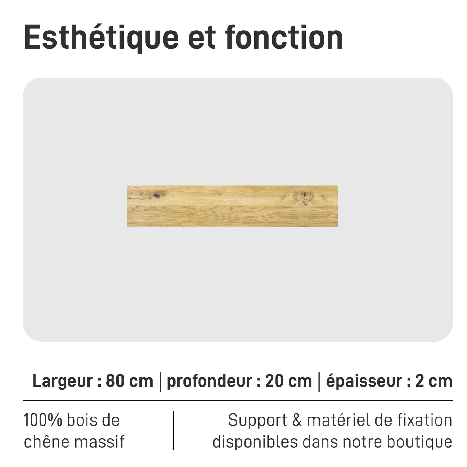 Apportez une touche d'élégance et de chaleur à votre espace de vie grâce à cette étagère murale en chêne massif. Avec son design authentique, elle s'intègre parfaitement dans n'importe quelle pièce, ajoutant une note de charme rustique tout en offrant une solution de rangement pratique.