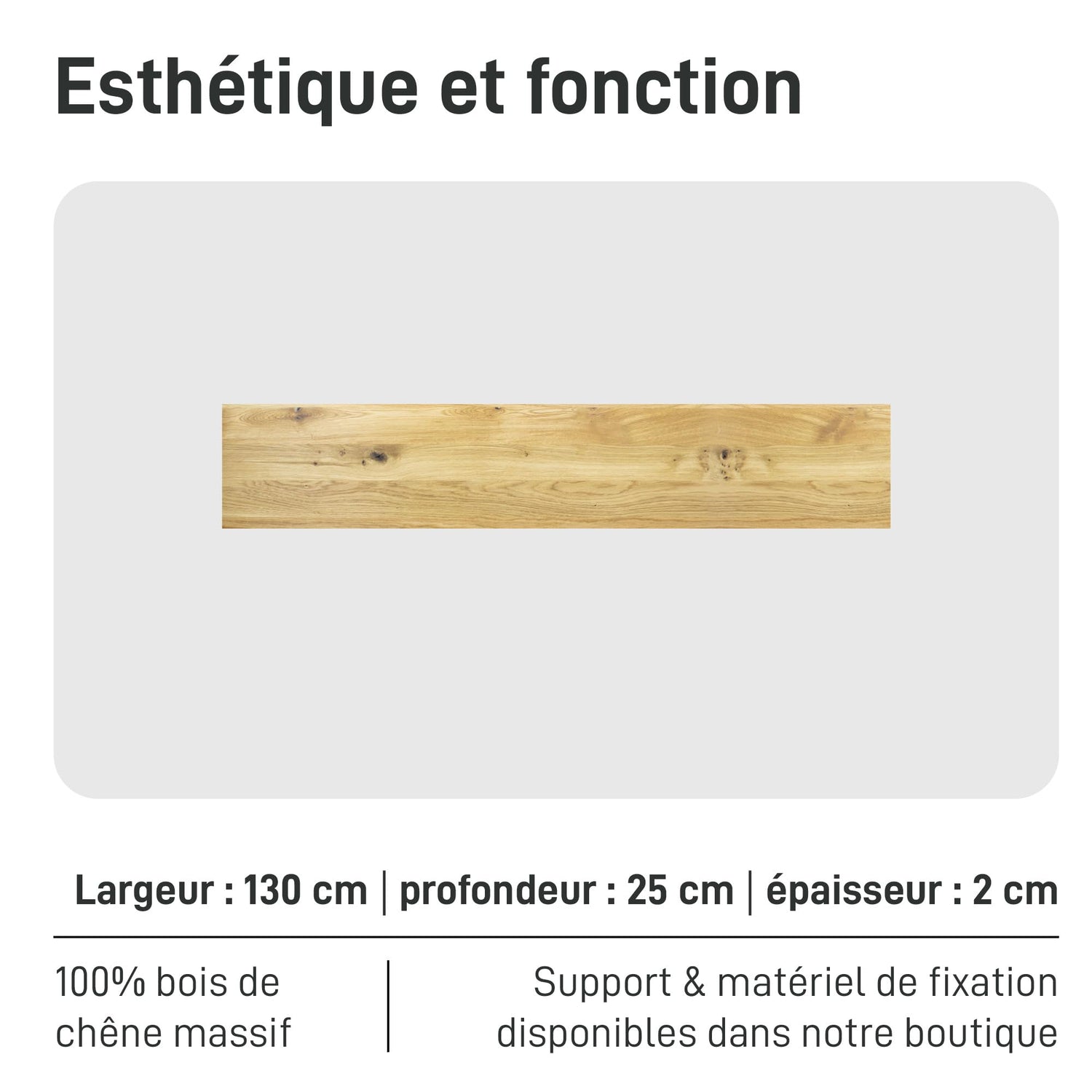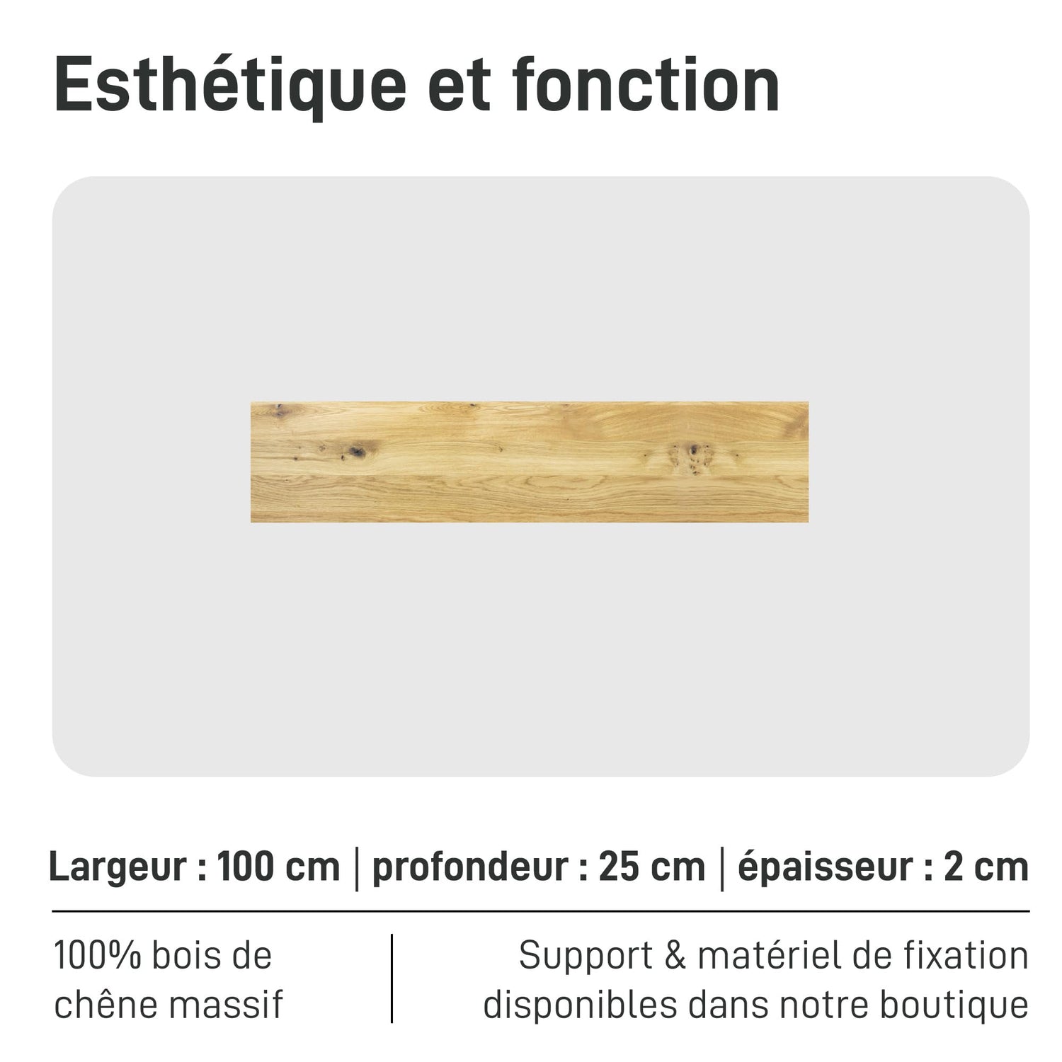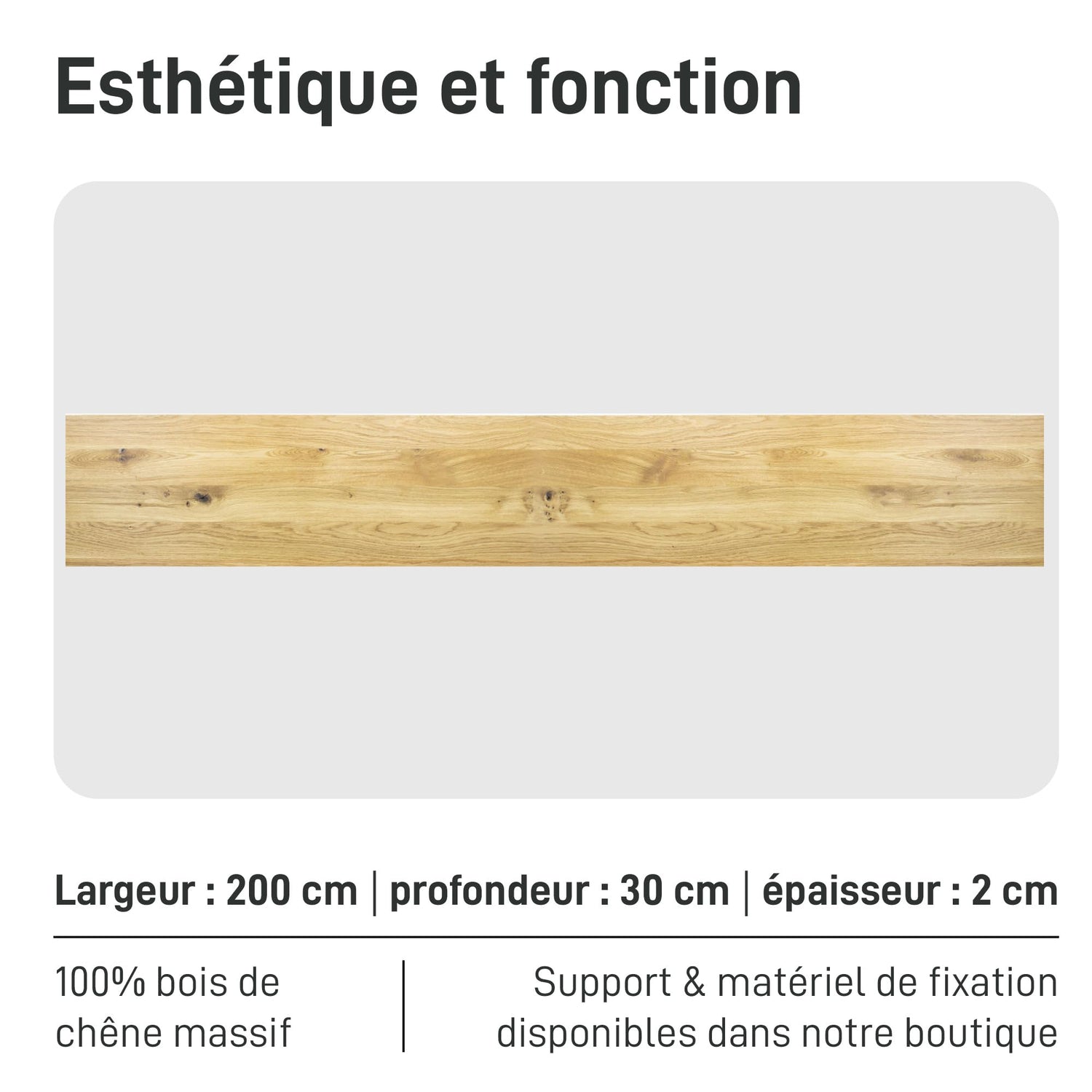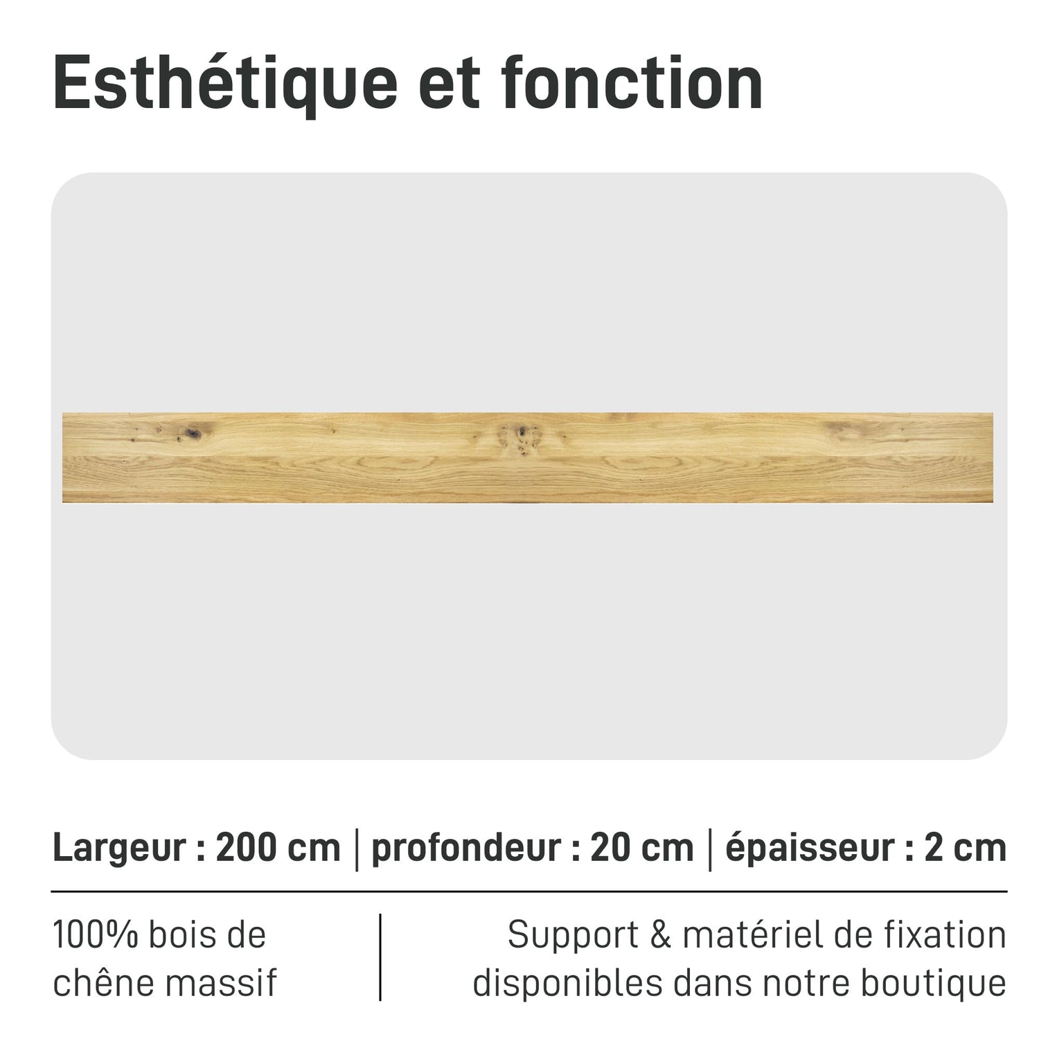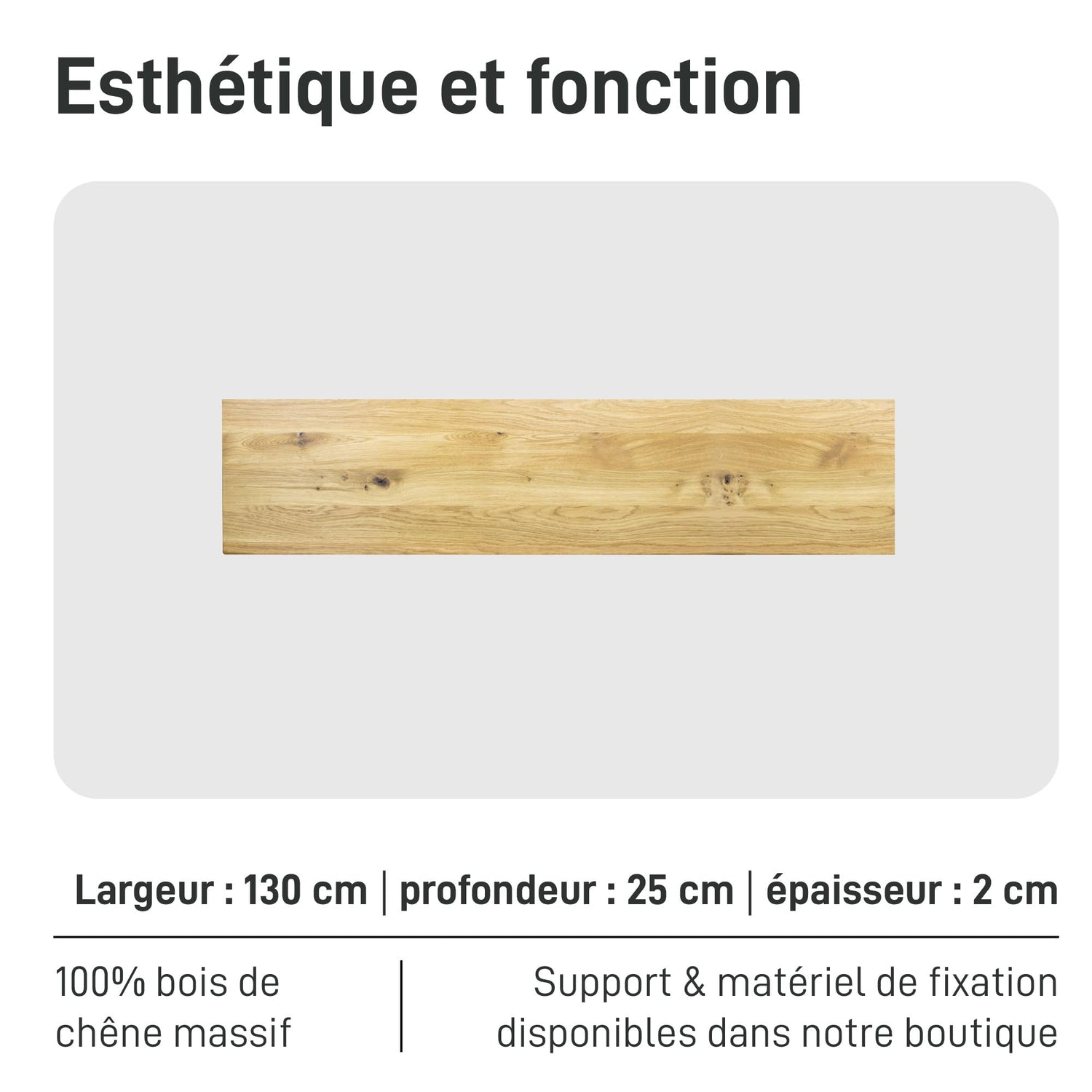 Apportez une touche d'élégance et de chaleur à votre espace de vie grâce à cette étagère murale en chêne massif. Avec son design authentique, elle s'intègre parfaitement dans n'importe quelle pièce, ajoutant une note de charme rustique tout en offrant une solution de rangement pratique.