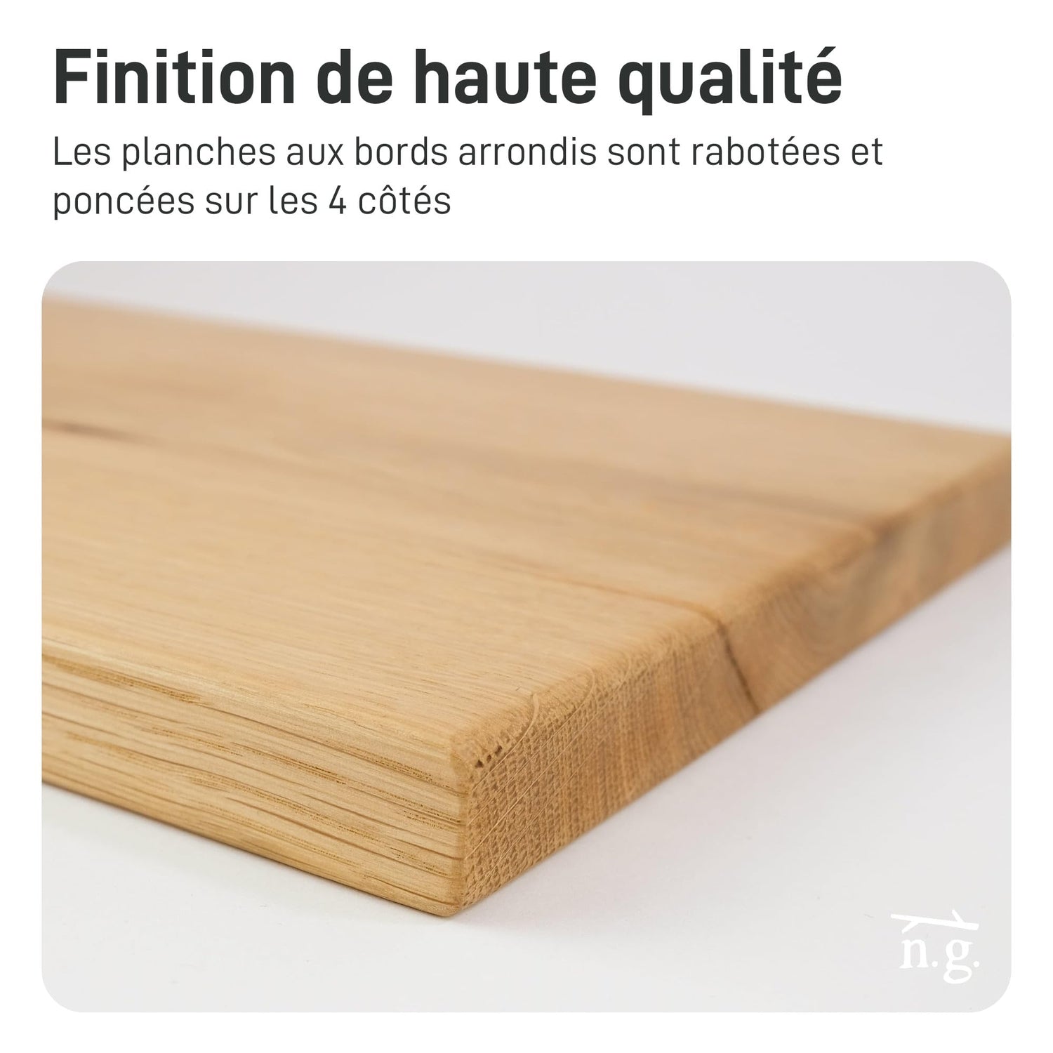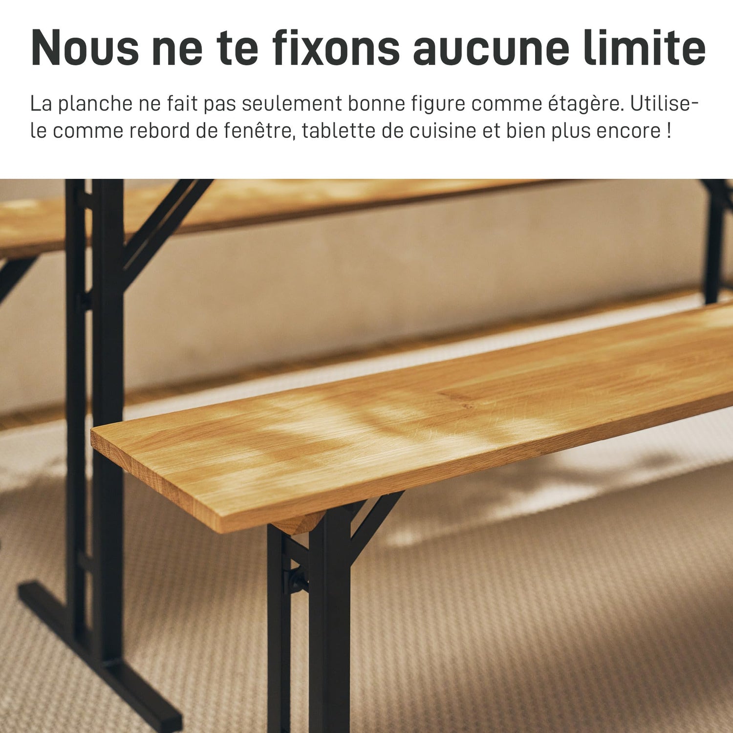 Fabriquée en bois de chêne européen certifié, cette planche murale est aussi durable qu'esthétique. Que ce soit pour présenter vos livres préférés, exposer vos plantes ou organiser votre vaisselle, elle devient rapidement un élément central de votre décoration.